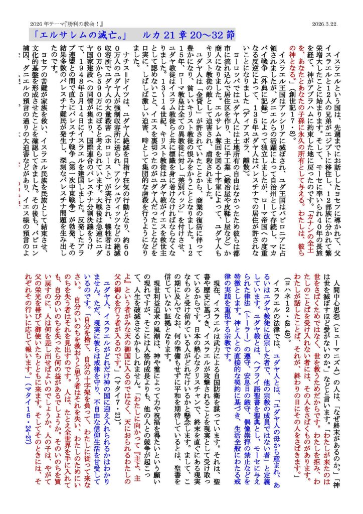 PDF:「エルサレムの滅亡。」 ルカ21章20~32節